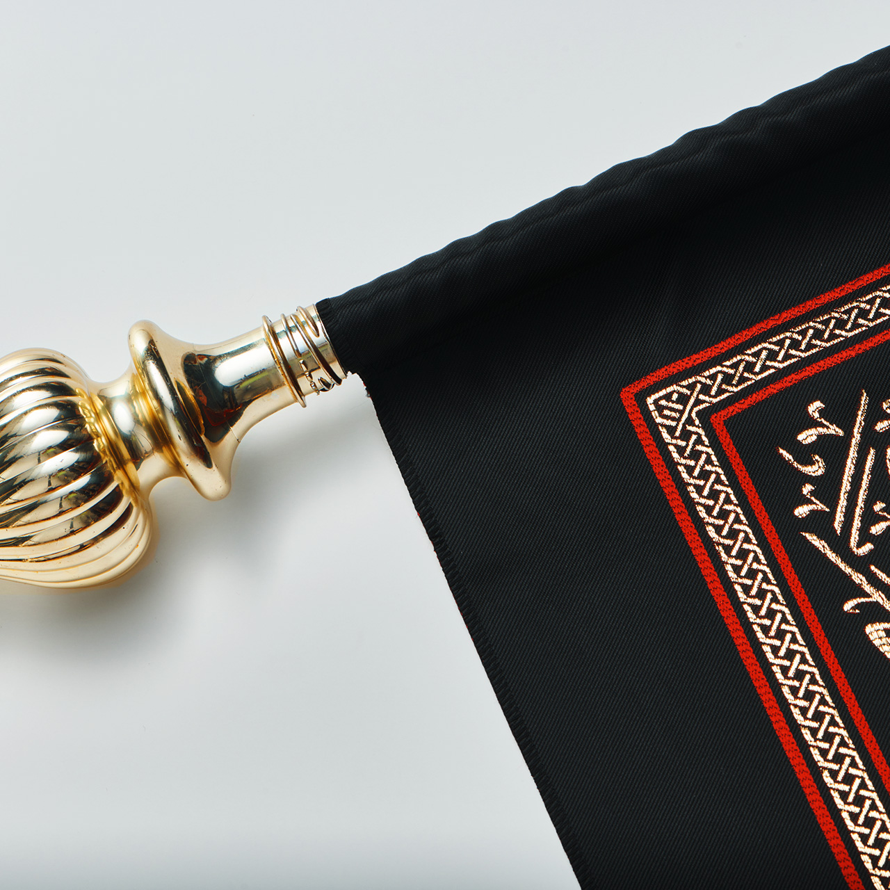 پلاکارد افقی محرم کد 22 محصولی بازبان زربافت همراه با محتوا عرض ارادت به ساحت قمرالعشیر قمر بنی هاشم را مردی که نام رفیعش عظمت تمام لحظه لحظه هایش عطش را در خویش ماوا داده است . ابداع کتیبه و پلاکاردهای زربافت تحولی نهادی را در تزیین مجالس اهل البیت پایه ریزی نموده و حال آنکه مناسبت این ابداع به همراه محتوا و تولید سازه کارهای نوین حرکتی را به وجود اورده باشد که همراهان کاروان اشک را در مقام ابراز ارادت قشایقی خاص نموده باشد استفاده از رنگهای بدین به همراه خط نستعلیق در این مجموعه تولیدات خطاطی بدین گونه را در اعتلای مجالس اباعبداللحسین فراهم آورده است باشد که مورد تایید آن امام قرار بگیرد.