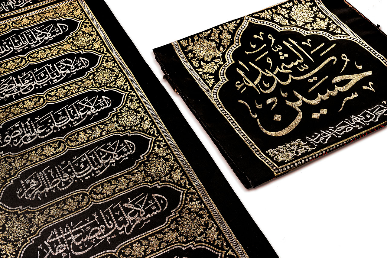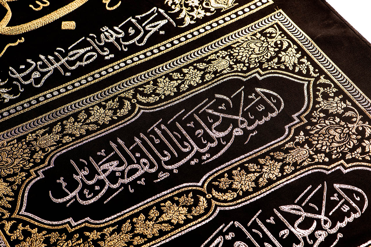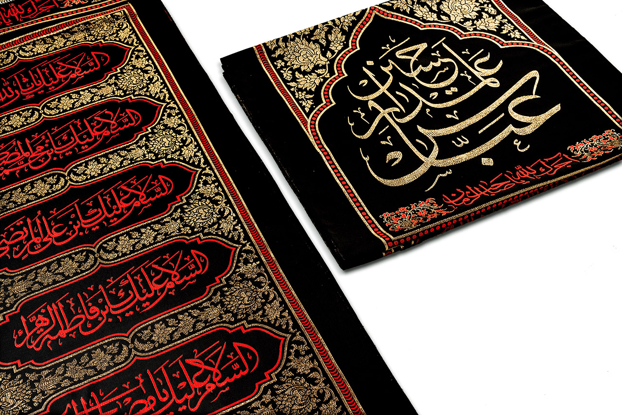 پلاکارد افقی محرم کد 22 محصولی بازبان زربافت همراه با محتوا عرض ارادت به ساحت قمرالعشیر قمر بنی هاشم را مردی که نام رفیعش عظمت تمام لحظه لحظه هایش عطش را در خویش ماوا داده است . ابداع کتیبه و پلاکاردهای زربافت تحولی نهادی را در تزیین مجالس اهل البیت پایه ریزی نموده و حال آنکه مناسبت این ابداع به همراه محتوا و تولید سازه کارهای نوین حرکتی را به وجود اورده باشد که همراهان کاروان اشک را در مقام ابراز ارادت قشایقی خاص نموده باشد استفاده از رنگهای بدین به همراه خط نستعلیق در این مجموعه تولیدات خطاطی بدین گونه را در اعتلای مجالس اباعبداللحسین فراهم آورده است باشد که مورد تایید آن امام قرار بگیرد.